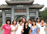 學(xué)生在河工大校門合影 |